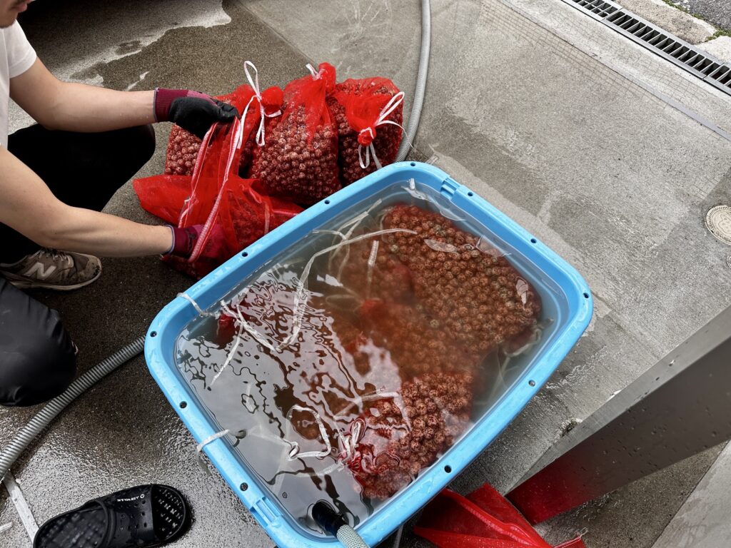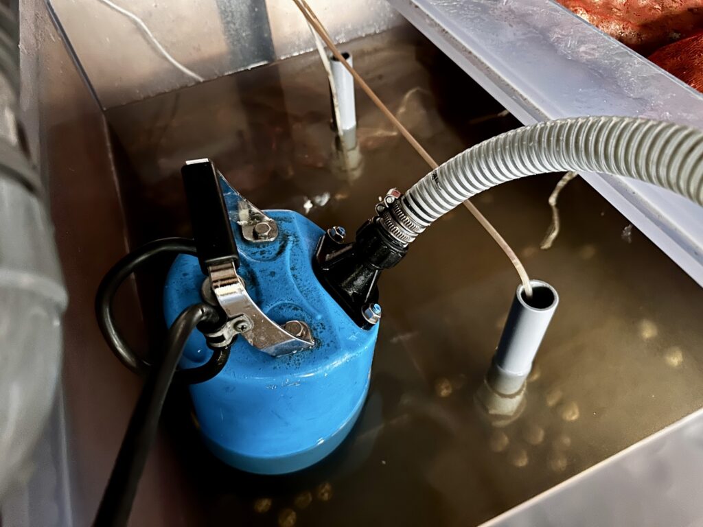 飼育水を使ってろ材をガンガン洗浄し、ヘドロを一気にポンプで吸い出します!