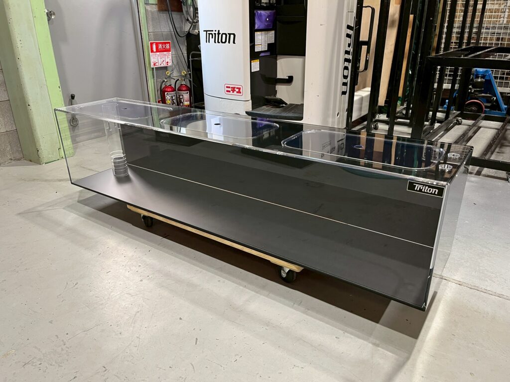 ~納品内容~ アクリル水槽(天板くり抜き・底面黒板) W1700/D350/H380 10/8t 天板くり抜き専用蓋3枚(塩ビ製3t) アクリル三重管加工(排水40A・給水16A) カッティング施工(背面:黒色) リブ穴加工×2 水槽納品事例 この記事が気に入ったら フォローしてね! Follow @aquashop_triton Follow Me よかったらシェアしてね! URLをコピーしました! URLをコピーしました!