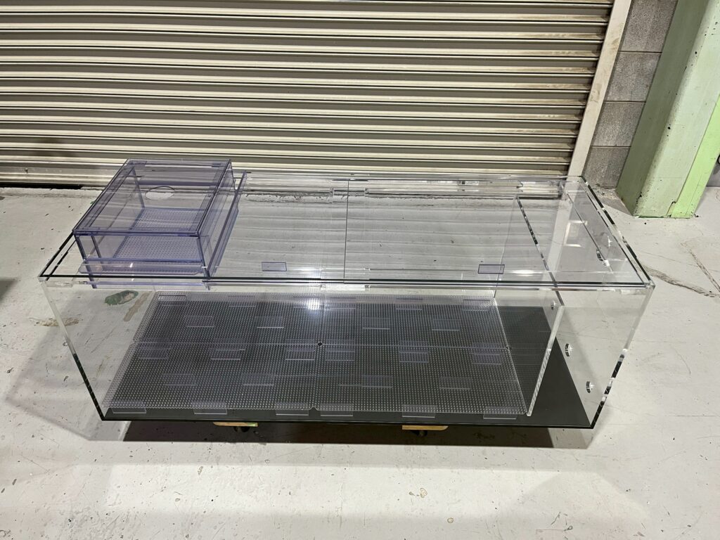 - アクリル水槽(天板くり抜き・底面黒板) W1800/D600/H600 10/8t