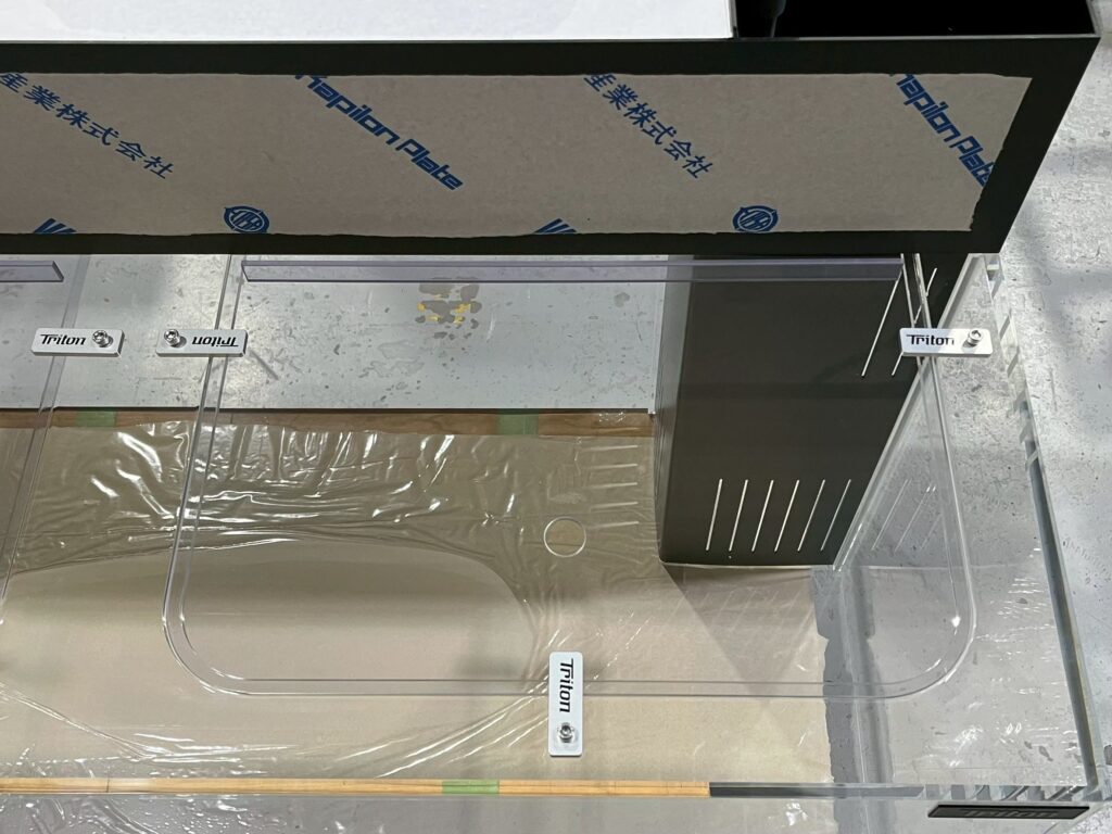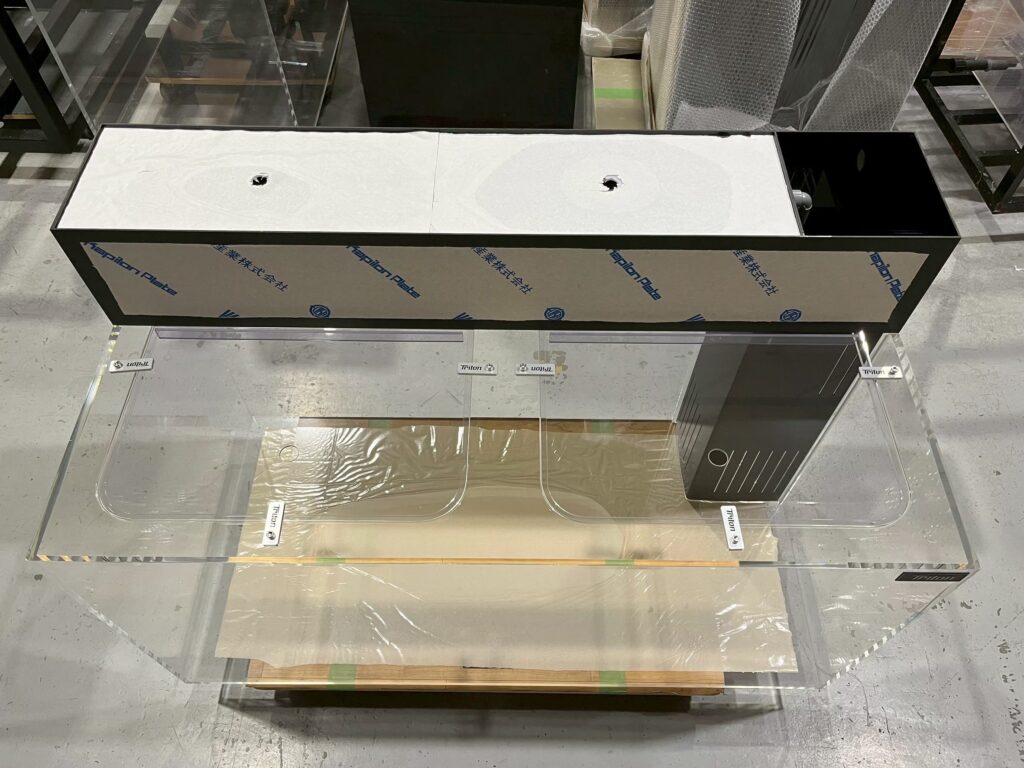 ~納品内容~ アクリル水槽(天板くり抜き・クリア) W1200/D600/H600 10/8t 上部フィルター W1200/D220/H200(黒色・シングルシャワー) 天板くり抜き専用蓋2枚(塩ビ製3t) はめ込み式コーナーカバー 飛び出し防止加工(アルミ製ロゴプレート) 水槽納品事例 この記事が気に入ったら フォローしてね! Follow @aquashop_triton Follow Me よかったらシェアしてね! URLをコピーしました! URLをコピーしました!