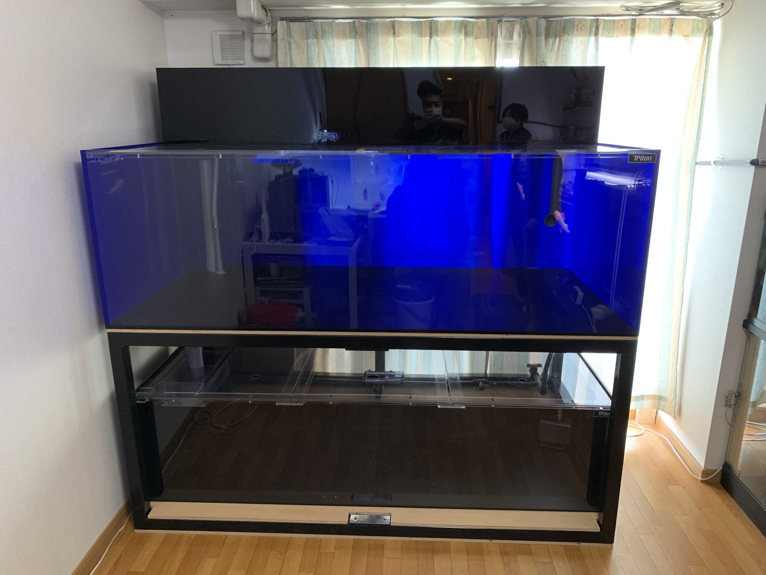 ~施工内容~ アクリル水槽(上) W1800/D900/H600 13/10t アクリル水槽(下) W1500/D600/H450 8/6t 水槽蓋(餌窓・飛び出し防止加工) 特注ウールボックス 特注ワイド上部フィルター(300mm) オリジナル鉄製水槽台 水槽設置事例 この記事が気に入ったら フォローしてね! Follow @aquashop_triton Follow Me よかったらシェアしてね! URLをコピーしました! URLをコピーしました!