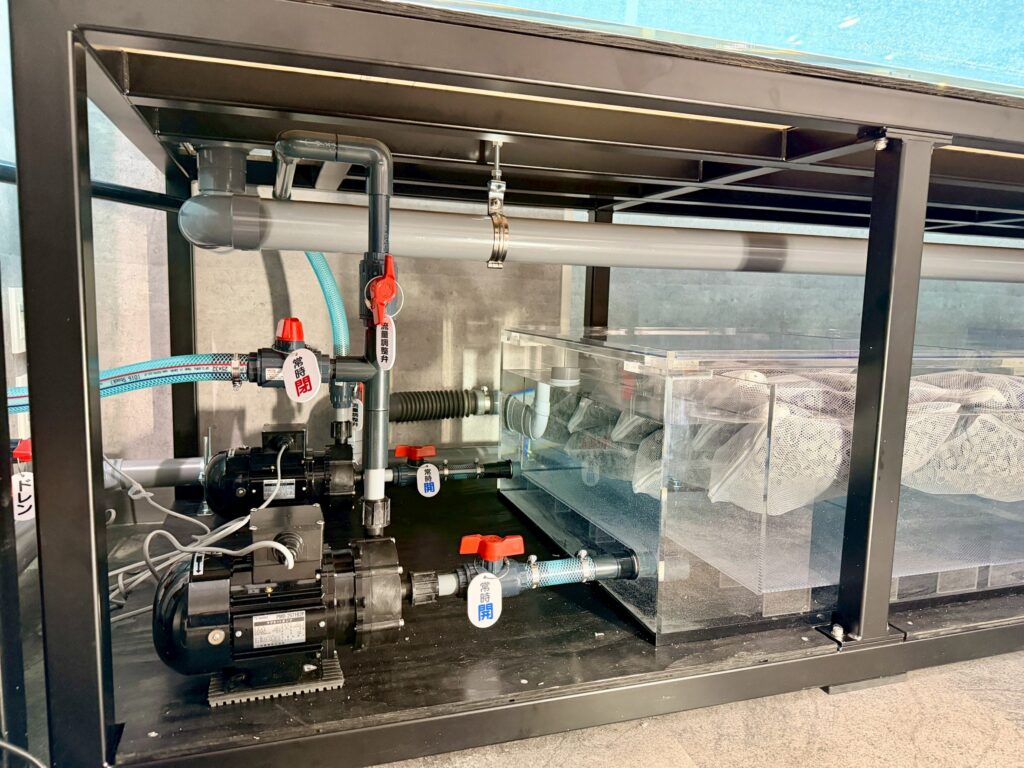 ~施工内容~ アクリル水槽(天板くり抜き・クリア) W3000/D1000/H900 20/15t アクリル製濾過槽 W2000/D750/H400(3層式・UB:W300/H150) 一体型鉄製水槽台 H800 天板くり抜き専用蓋 4枚(塩ビ製5t) OF加工(3系統配管:排水65A・給水20A×2・ドレン25A) 飛び出し防止加工(アルミ製ロゴプレート) リブ穴加工×2 マグネットポンプ PMD-2571B2P(SANSO製) 水槽設置事例 この記事が気に入ったら フォローしてね! Follow @aquashop_triton Follow Me よかったらシェアしてね! URLをコピーしました! URLをコピーしました!